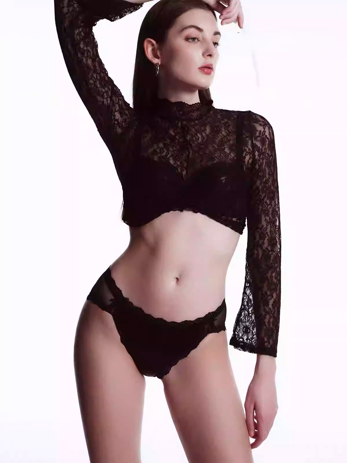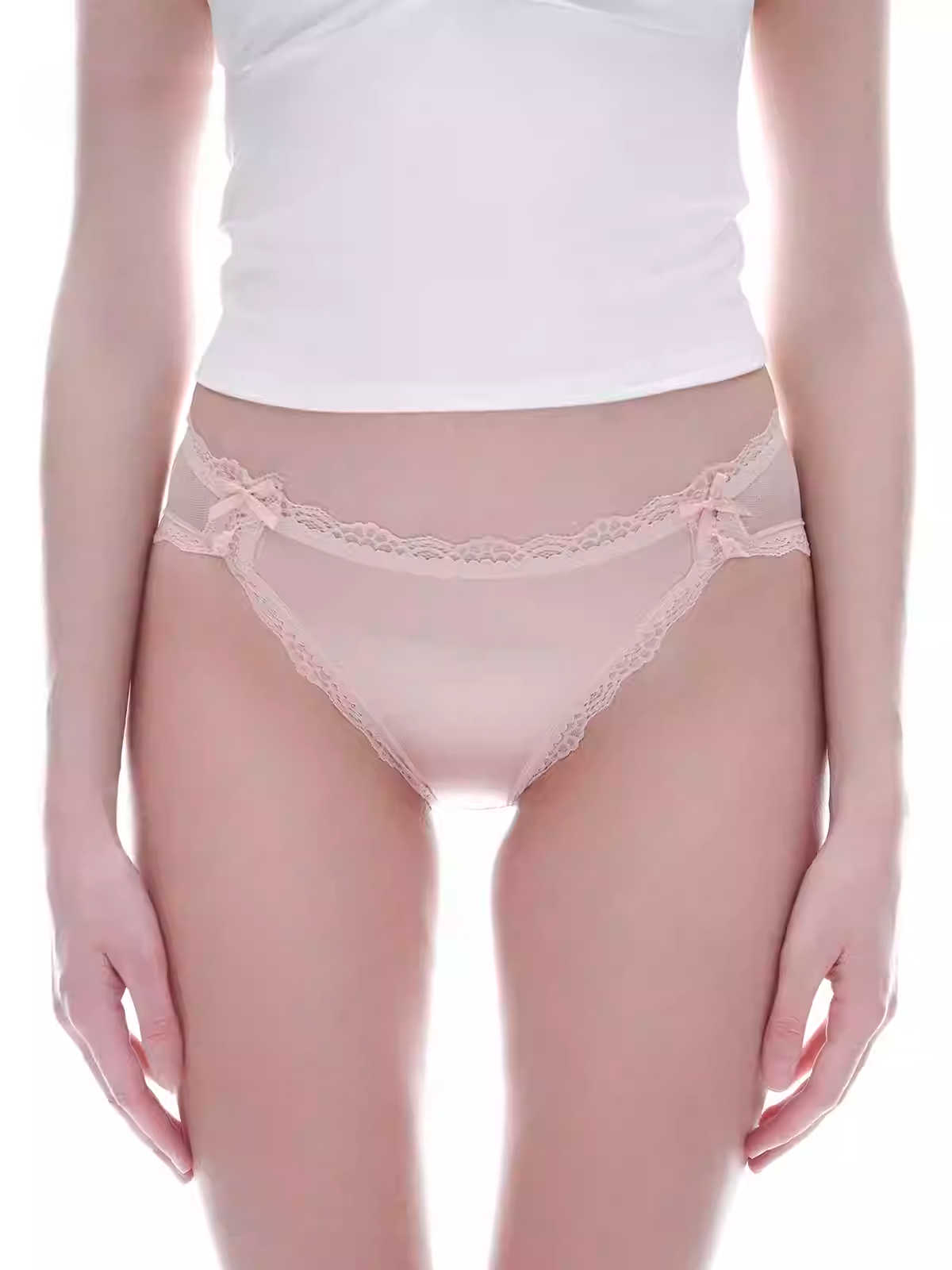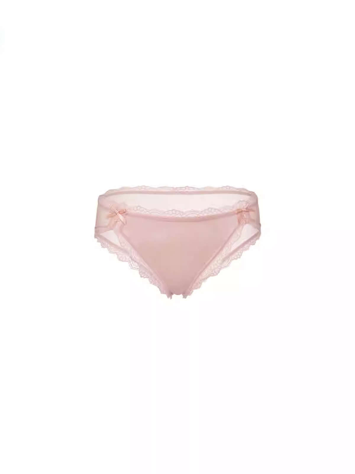 Charming and delicate, this mid-waist mesh lace panty blends comfort with romance. Decorated with double satin bows and scalloped lace trim, it flatters the hips and provides a light, breathable fit. Available in soft pink, classic black, and white, perfect for daily elegance or intimate allure.