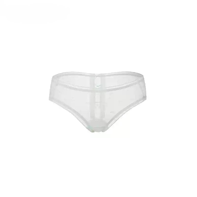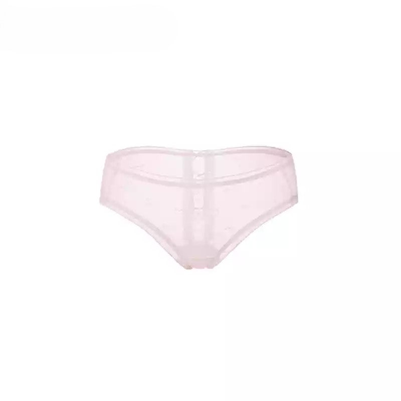 Soft, sweet, and subtly seductive—this panty blends sheer mesh, heart prints, and ribbon corset detailing for a pure yet flirty look. The delicate lace and playful back design add charm and a touch of allure. Ideal for girls who love innocence with a whisper of temptation.