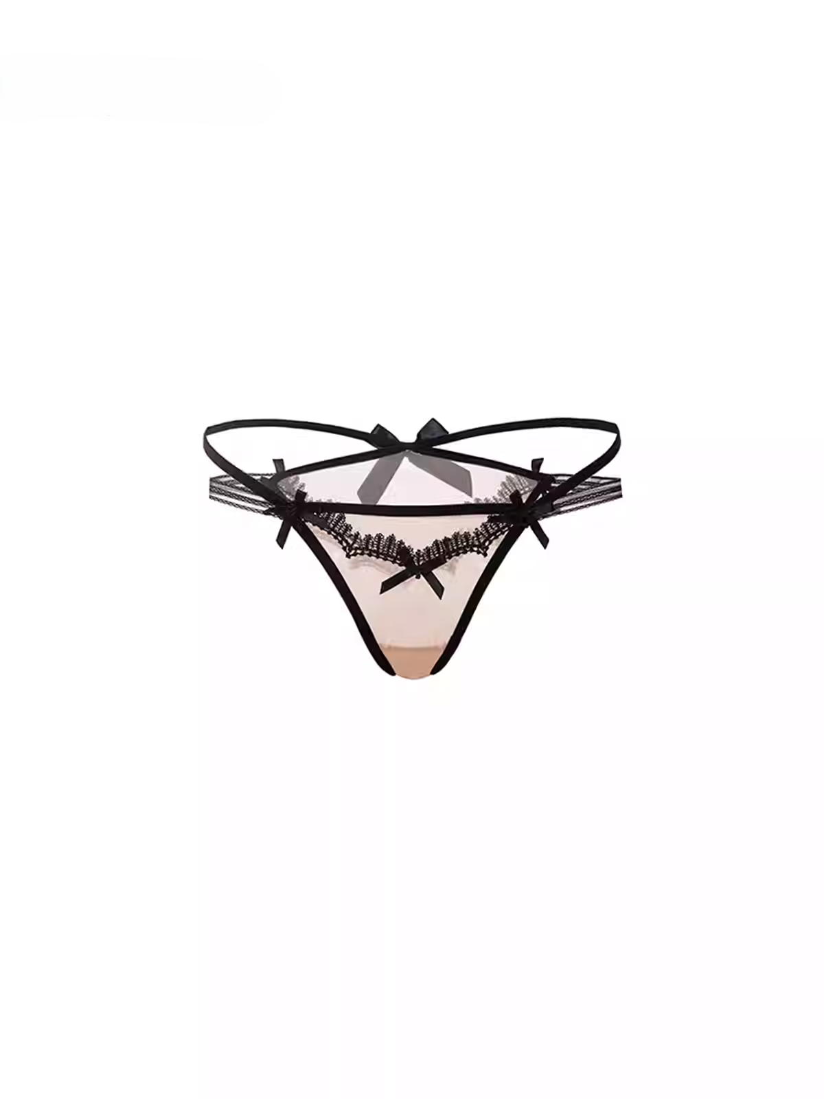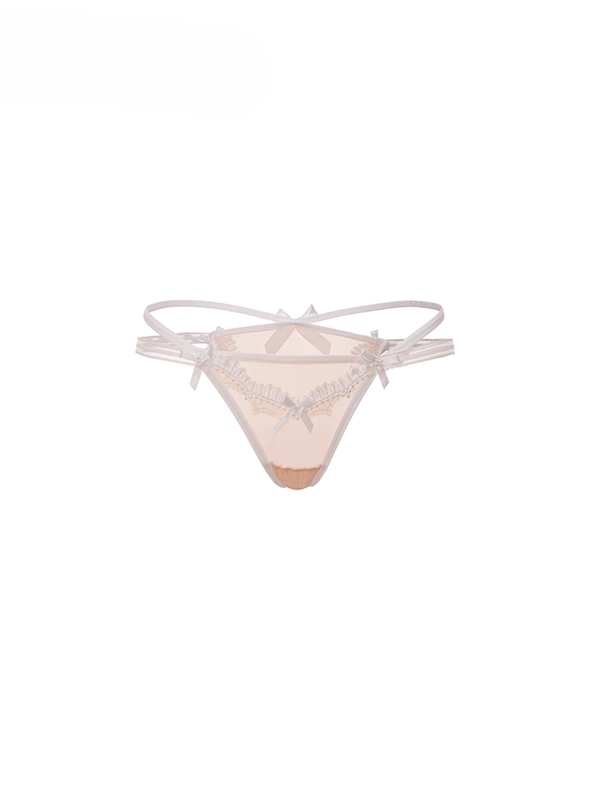 Sheer mesh and delicate lace combine in this bold thong, featuring double satin bows and fine side straps. Sexy cutouts highlight curves with elegance, adding a flirty, feminine edge to your lingerie wardrobe.