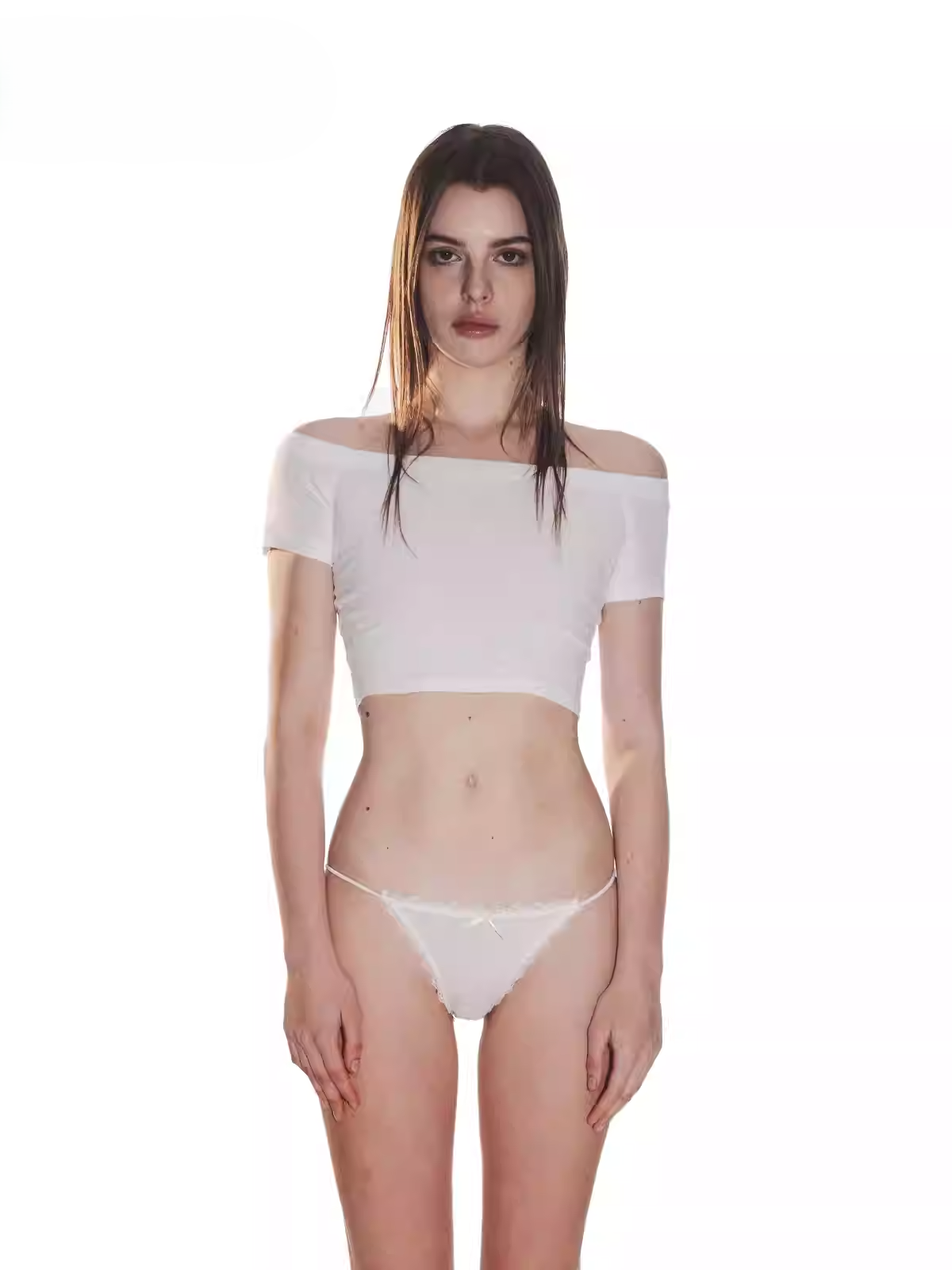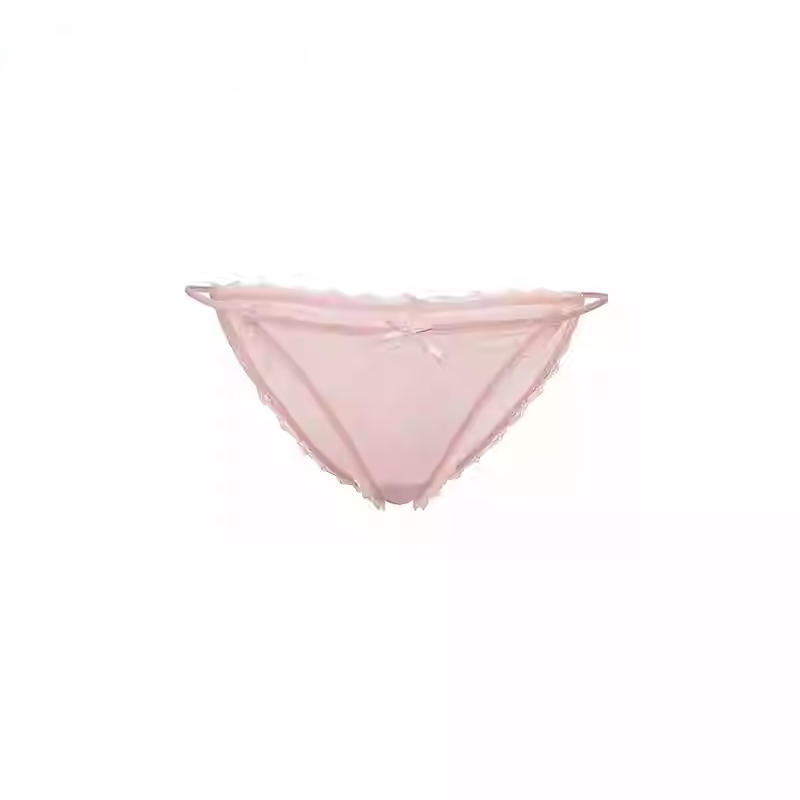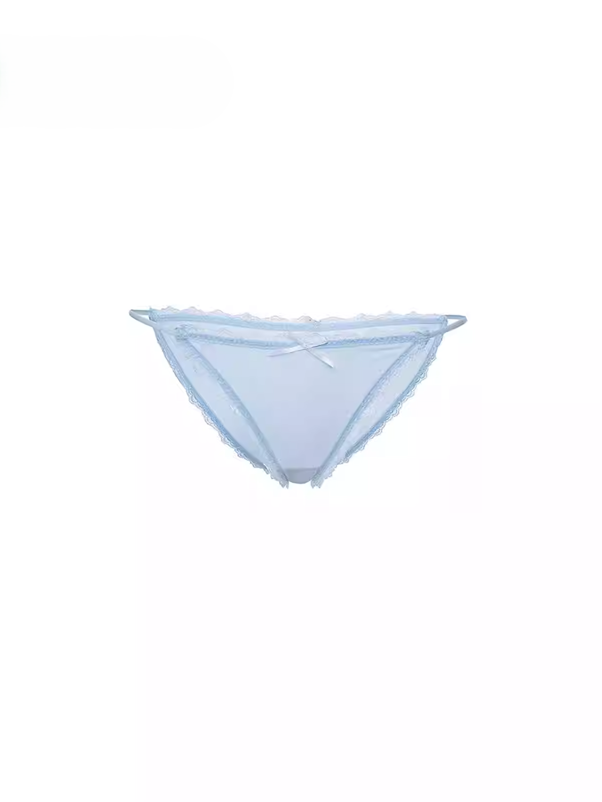 Delicate sheer mesh and scalloped lace come together in this ultra-slim silhouette. Featuring micro side straps and a dainty bow detail, this panty is the essence of minimal elegance. Soft to the touch and irresistibly sexy, it’s designed for both confidence and charm.