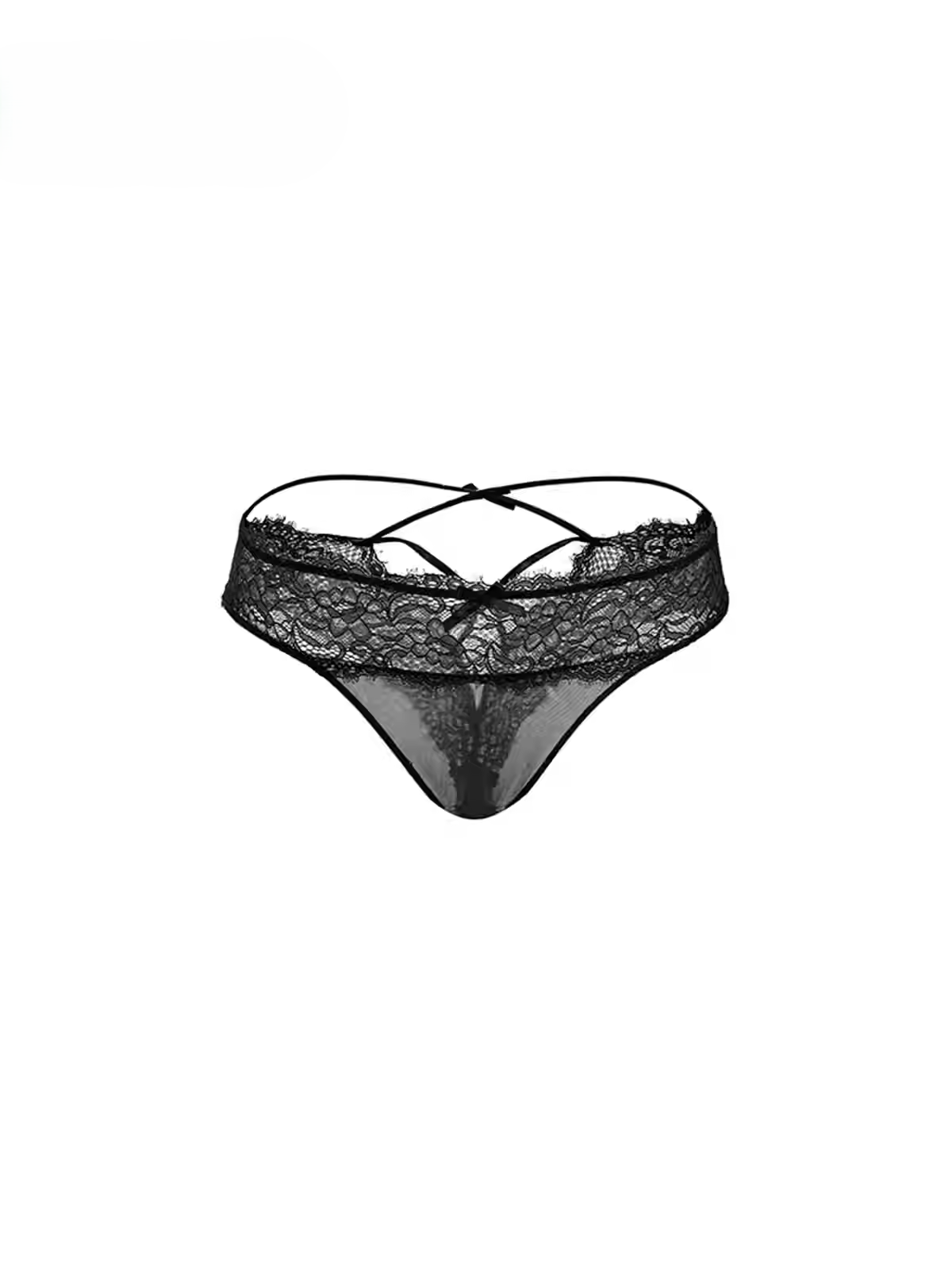 Delicate lace hugs the curves with crisscross straps and double bow accents, creating a charmingly seductive silhouette. Feminine, flirty, and irresistibly bold.